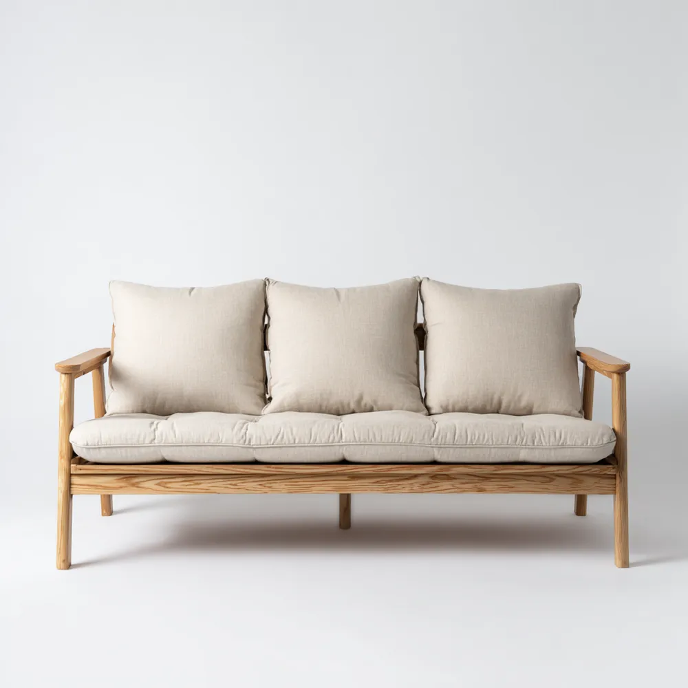 3-Sitzer-Sofa Holzrahmen Leinwandbezug 200x90x80 cm – Creme – Minimalistisches Design