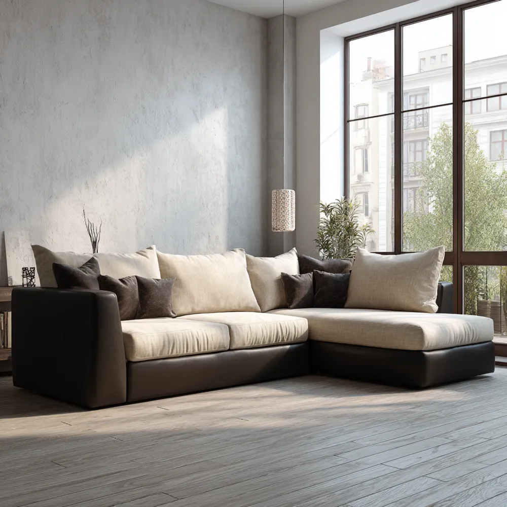 Ecksofa Stoffpolsterung 250x150x85 cm – Creme/Braun – Modernes Design