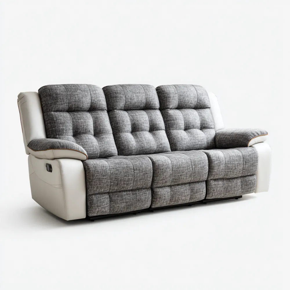 Material und VerarbeitungDas Sofa besteht aus hochwertigem Stoff in einer ansprechenden grauen Farbe kombiniert mit robustem PU-Leder in Creme. Die Materialien wurden sorgfältig ausgewählt, um Haltbarkeit und einfachen Pflegekomfort zu gewährleisten.