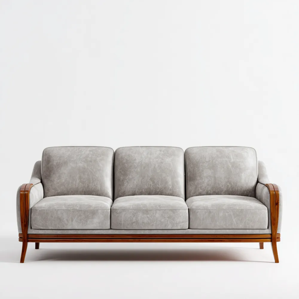 Material und VerarbeitungGefertigt aus hochwertigem hellgrauem Leder, bietet dieses Sofa nicht nur Stil, sondern auch Langlebigkeit und einfache Pflege. Der Rahmen besteht aus massivem Holz, das Stabilität und Robustheit gewährleistet.