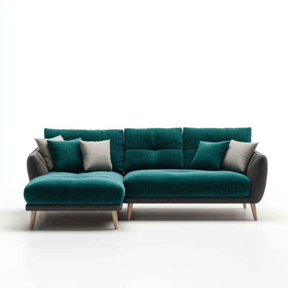 Material und VerarbeitungDas Sofa ist mit einem hochwertigen Stoff in Petrol und Anthrazit bezogen, der langlebig und pflegeleicht ist.